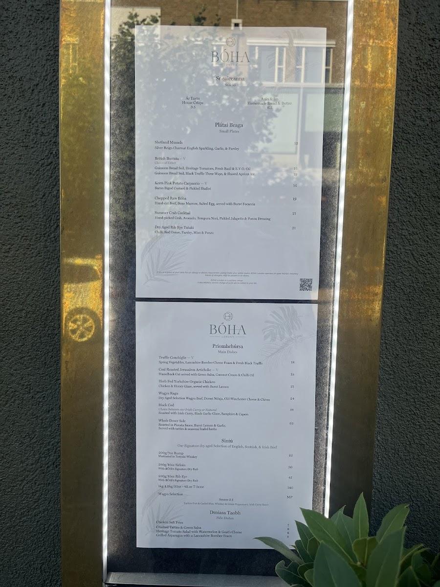 BÓHA LONDON Menu